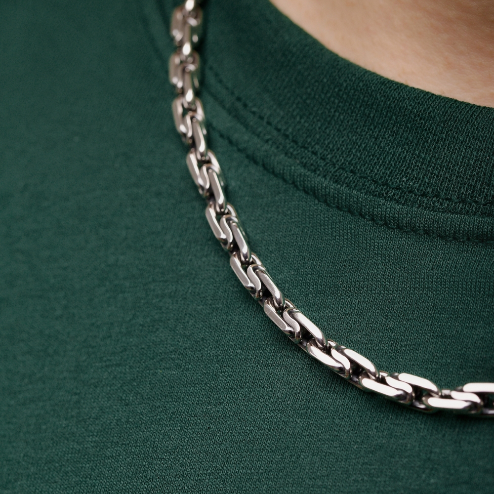 Стильная Серебряная цепочка "Двойной якорь" станет лучшим признаком отличного вкуса ее обладателя. Для мужчин украшение подойдет идеально, так как производителем выбрано плетение двойной ярокь . Аксессуар отличается безупречным качеством, чему способствует 925 проба и металл серебро.